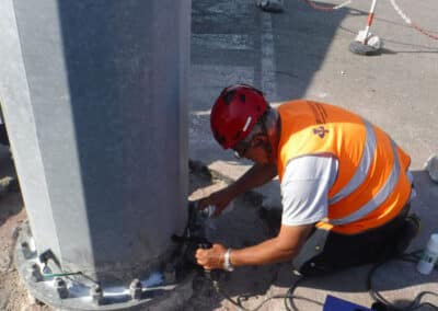Per garantire la sicurezza e la salvaguardia di strutture e persone e per agire sempre nel massimo rispetto delle normative vigenti in materia, (D.M. 17/01/2018) GT Installazioni offre ai propri clienti controlli strutturali dello stato di fatto e degrado, effettuando prove non distruttive e rilasciando un documento di idoneità firmato da Tecnico di II livello abilitato. Gli elementi strutturali oggetto della verifica strumentale (prove non distruttive VT – MT – UT) vengono effettuate nelle zone di maggior rischio di creazione di cricche delle saldature o corrosione degli elementi. Per le torri faro a Corona Mobile si controlla lo stato dei tirafondi (se presenti), oppure la zona sottostante al piano di campagna (nel caso di torri faro inghisate), lo stato di eventuale corrosione dello spessore del materiale e del rivestimento, il controllo delle saldature nelle zone di incastro tra i tronchi (soggette a maggior sollecitazioni) e alle saldature delle flange di base e di testa. Per le torri faro a Piattaforma Fissa si controlla lo stato dei tirafondi (se presenti), oppure la zona sottostante al piano di campagna (nel caso di torri faro inghisate), lo stato di eventuale corrosione dello spessore del materiale e del rivestimento, il controllo delle saldature nelle zone di incastro tra i tronchi (soggette a maggior sollecitazioni), lo stato della bulloneria eventuale non conforme, il controllo del serraggio della bulloneria e il controllo visivo dello stato degli accessori installati (scale, centine, piattaforme porta proiettori, terrazzini di riposo, ecc…).