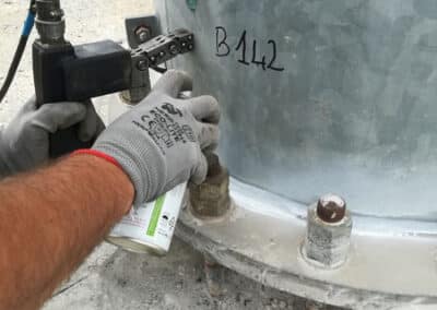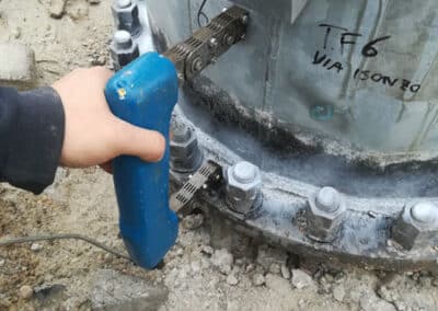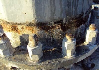 Nell’ipotesi che i tirafondi risultino ammalorati ma la struttura ancora verificata GT Installazioni propone ai propri clienti soluzioni alternative alla demolizione del plinto di fondazione, eseguendo il carotaggio con l’inserimento di nuovi tirafondi fissati con ancorante chimico ad iniezione.