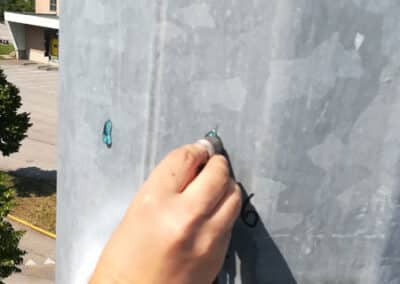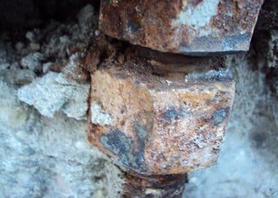 Nel caso in cui la struttura ed i tirafondi risultino verificati, ma presentino evidenti fenomeni di corrosione che possono nel tempo compromettere la stabilità della struttura provvediamo alla pulitura con sabbiatura, applicazione di zinco a pennello e vernice protettiva a pennello.