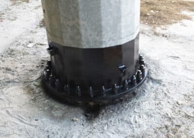 Oppure, in caso di torre infissa, sostituzione del fusto con recupero del plinto (previa ricertificazione ingegneristica) inserendo all’interno del foro, dopo adeguato trattamento, un tronchetto di accoppiamento.
