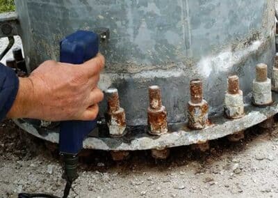 GT Installazioni effettua il controllo delle saldature su tutte le zone di incastro e su ogni saldatura (una saldatura se monoguscio o due saldature se biguscio). NON EFFETTUA I CONTROLLI A CAMPIONE in quanto deve avere l’assoluta certezza dell’assenza di cricche. GT Installazioni è in grado di effettuare prove di laboratorio di compressione del calcestruzzo del plinto di cemento, analisi della composizione del cemento del plinto ed eventualmente la verifica statica aggiornata con le ultime normative. Per queste attività, ci serviamo di Laboratori riconosciuti ed Ingegneri Strutturisti, con provata esperienza specifica, iscritti regolarmente all’Ordine degli Ingegneri.